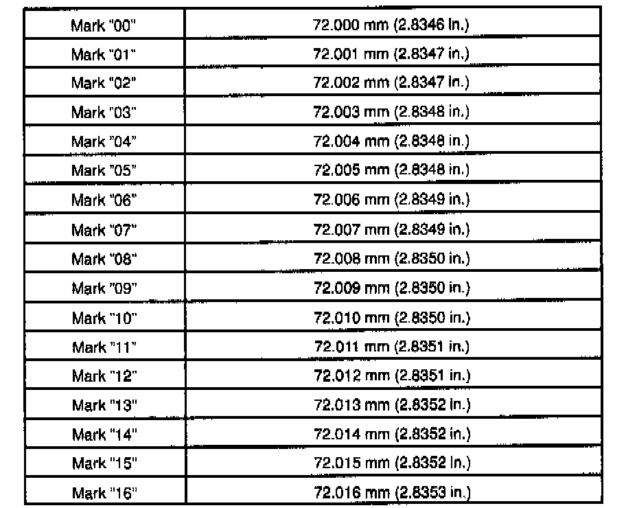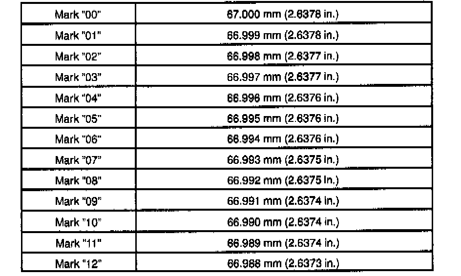 EXAMPLE: Cylinder block "08" + Crankshaft "06" = Total number 14 (Use bearing "2" (Upper), "3" (Lower))