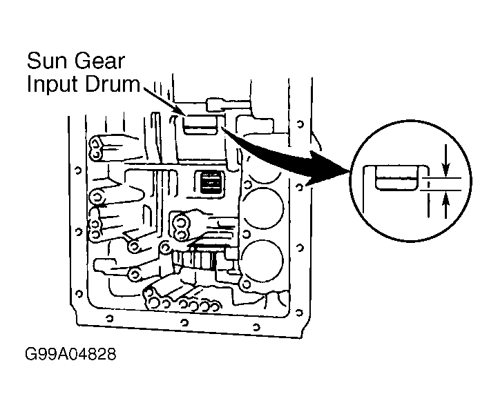 - Measure distance between sun gear input drum and direct clutch drum. See Fig 1. Distance should be .161-.236" (4.10-6.00 mm). If distance is not with specification, check for proper installation of components. Install 3rd coast brake spring, piston assembly and cover in case. Install snap ring.