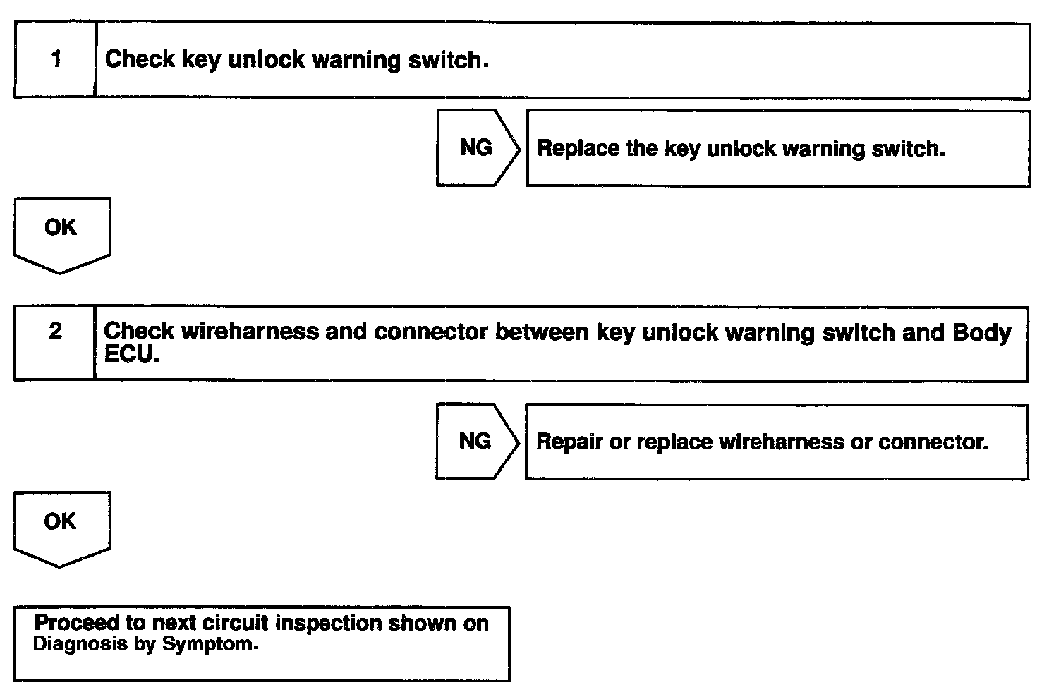 Home >> Lexus >> 2000 >> LX 470 V8-4.7L (2UZ-FE) >> Repair and Diagnosis >> Powertrain Management >> Computers and Control Systems >> Body Control Module >> Testing and Inspection >> Component Tests and General Diagnostics >> Key Unlock Warning Switch Circuit