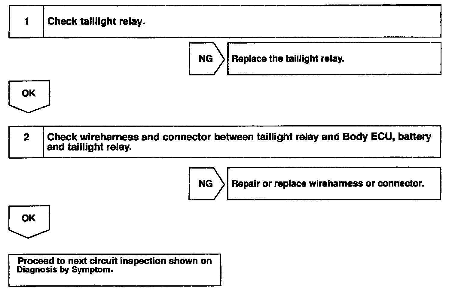 Home >> Lexus >> 2000 >> LX 470 V8-4.7L (2UZ-FE) >> Repair and Diagnosis >> Powertrain Management >> Computers and Control Systems >> Body Control Module >> Testing and Inspection >> Component Tests and General Diagnostics >> Taillight Relay Circuit