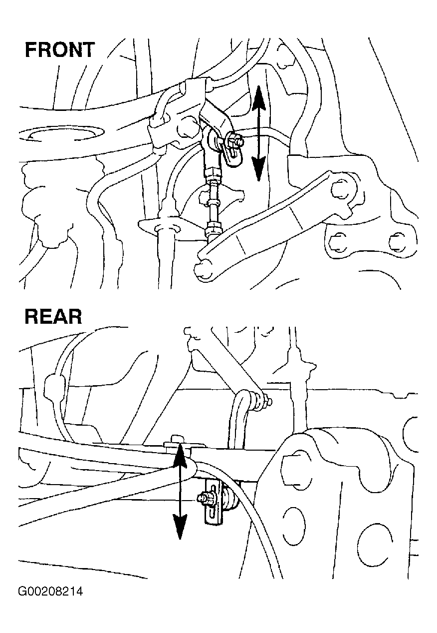 - On front sensor, when adjustment cannot be done by 5, loosen nuts of height control sensor link and turn link. To raise vehicle, turn clockwise and to lower turn counterclockwise. See Fig 4. Tighten nuts to specification. See TORQUE SPECIFICATIONS .