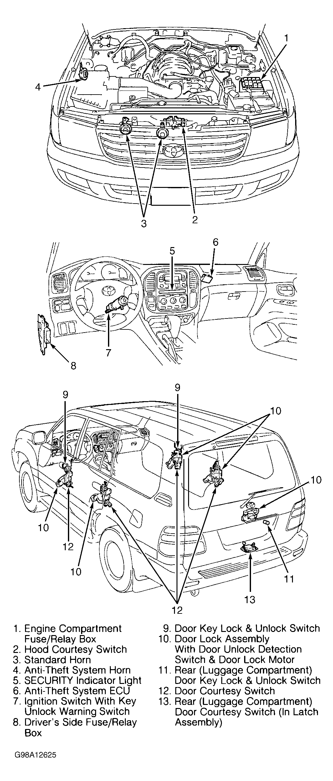 - Remove taillight control relay from driver's side fuse/relay box located near left side kick panel. See Figure.