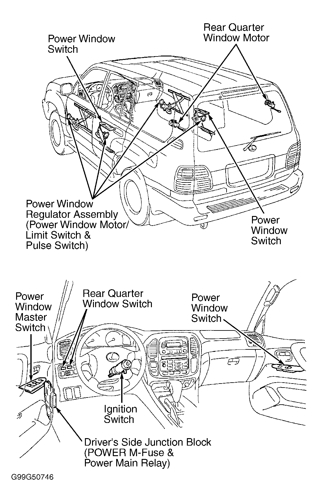 Driver's power window switch offers one-touch operation of driver's window. Driver's power window switch also includes a lock-out feature to prevent passengers from operating any of the other power window switches.