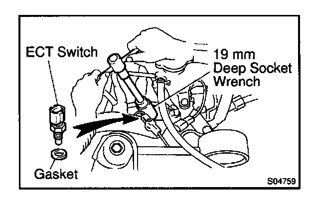 b. Using a 19 mm deep socket, install the ECT sensor.