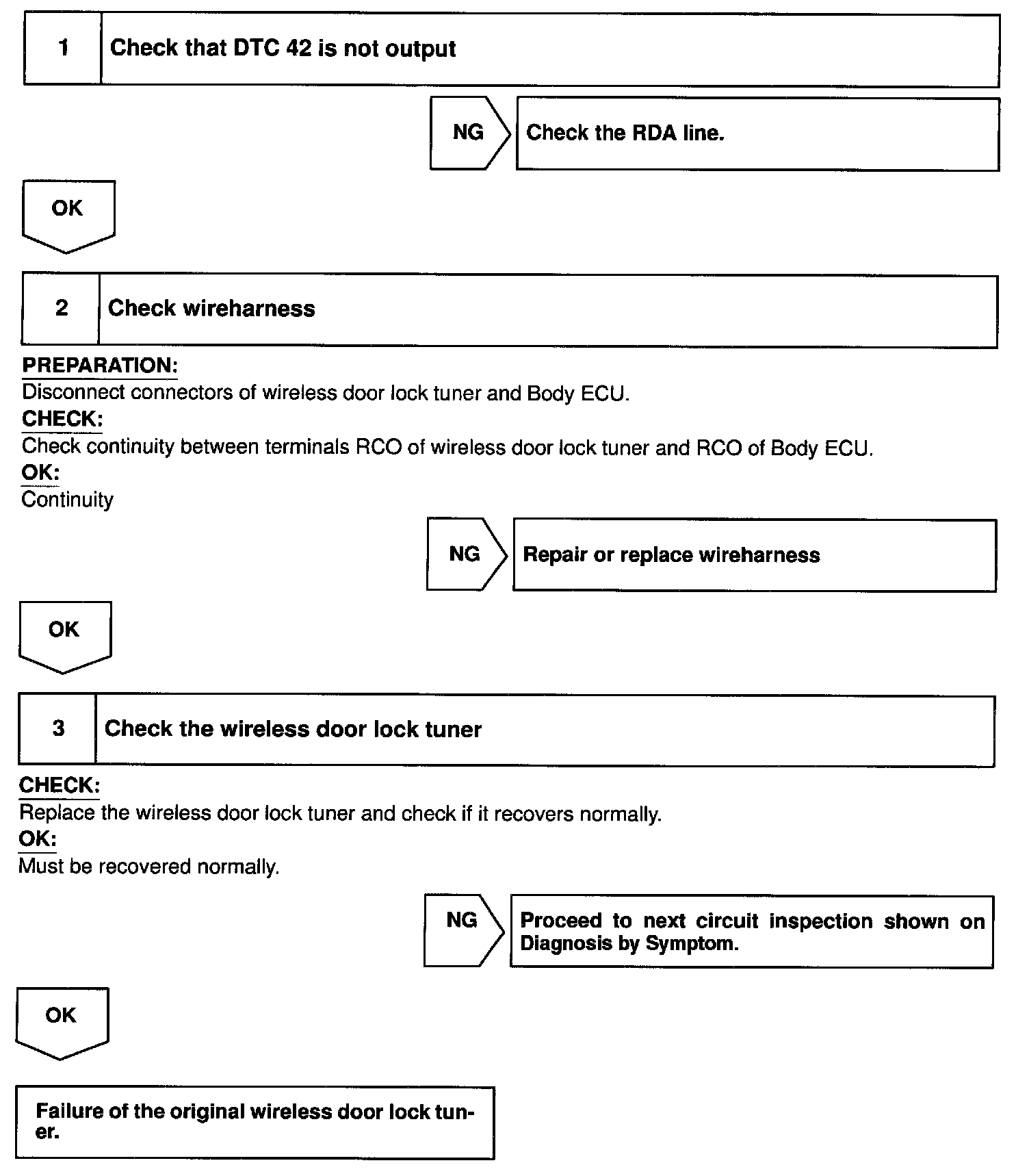 Home >> Lexus >> 2000 >> RX 300 AWD V6-3.0L (1MZ-FE) >> Repair and Diagnosis >> Powertrain Management >> Computers and Control Systems >> Relays and Modules - Computers and Control Systems >> Body Control Module >> Testing and Inspection >> Component Tests and General Diagnostics >> Wireless Door Lock Tuner Circuit