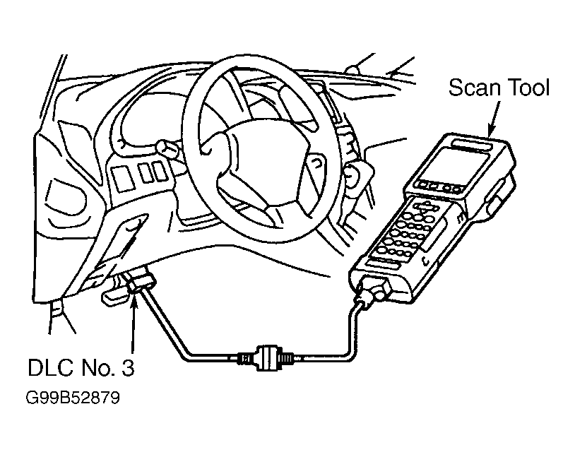 1. Connect Lexus scan tool to Data Link Connector (DLC) No. 3. See Fig 1 or Fig 2 . Turn scan tool on. Turn ignition on. Using scan tool, read STA signal with ignition on and then while cranking starter.
