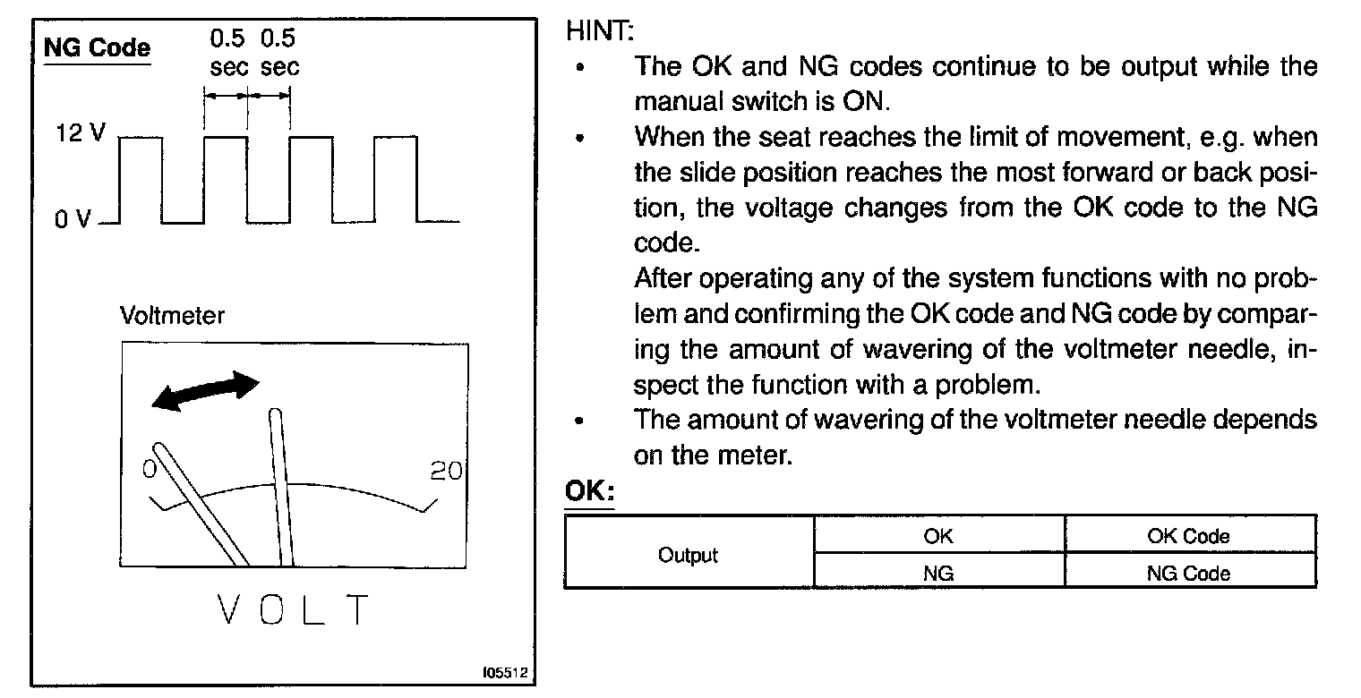 The ECU uses the number of pulses to constantly calculate the position relative to the memory position and returns the seat to the memorized position. If a malfunction occurs in a position sensor and a sensor signal is not input to the ECU even when the motor operates, the ECU prohibits return operation.