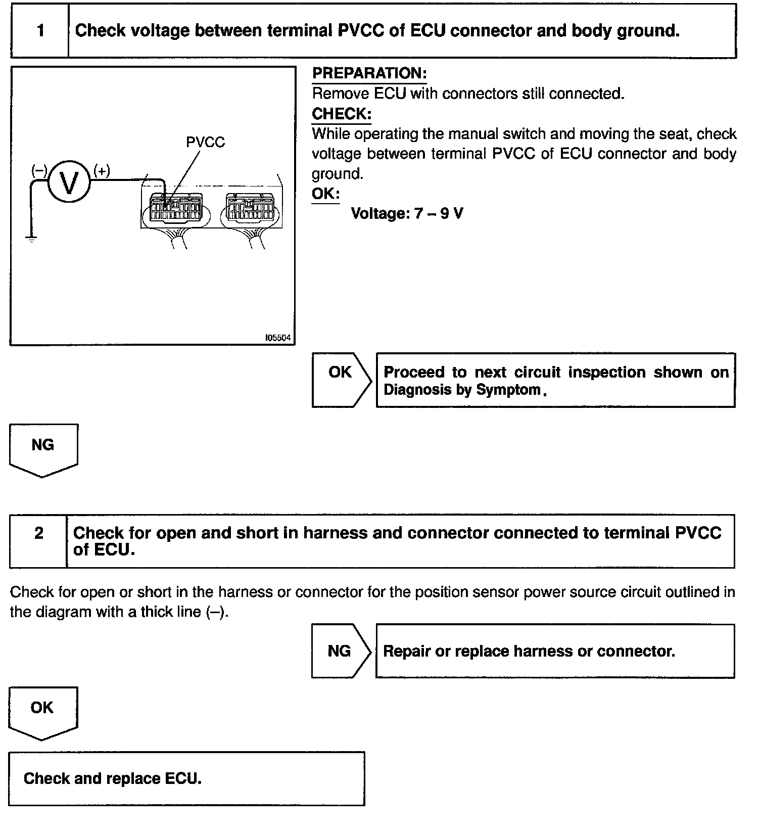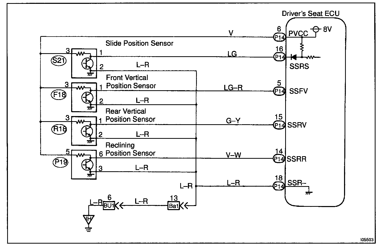 The circuit provides power to the slide, front vertical, rear vertical and reclining sensors.