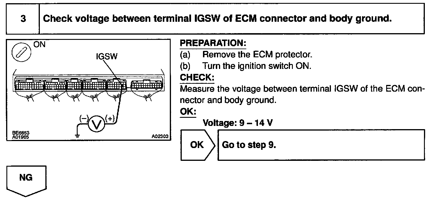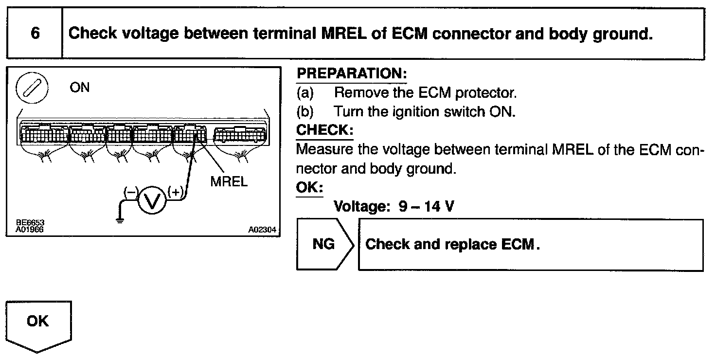 This signal causes current to flow to the coil, closing the contacts of the EFI main relay and supplying power to terminal B of the ECM.