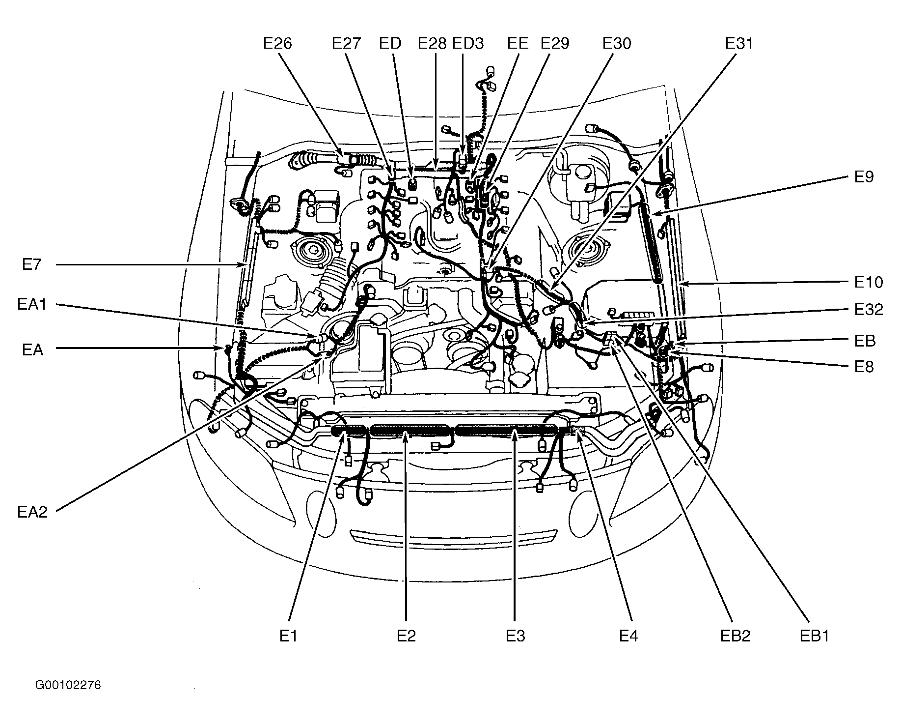 E2 (SC300) In engine harness, at upper right radiator support. See Figure.