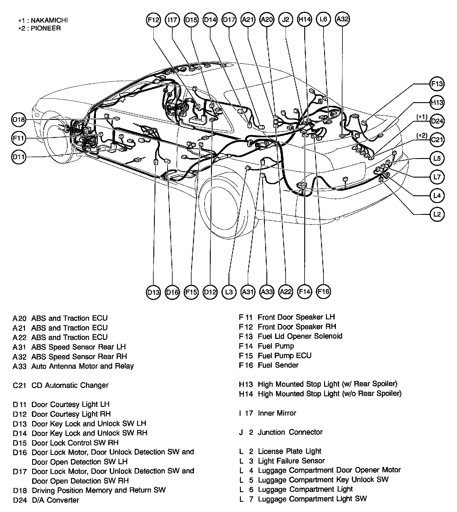 D17 Door Lock Motor, Door Unlock Detection SW RH and Door Open Detection SW RH
