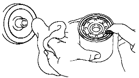 c) Lubricate the filter rubber gasket with clean engine oil.