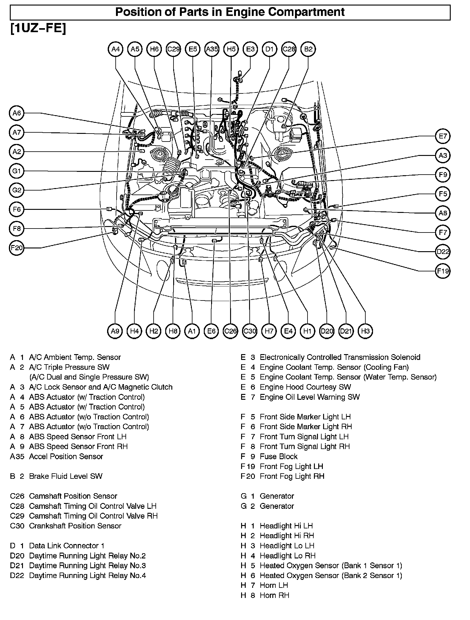 Position Of Parts In Engine Compartment: