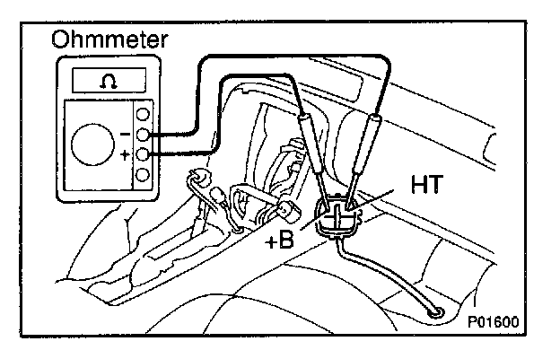 b. Using an ohmmeter, measure the resistance between the terminals +B and HT.