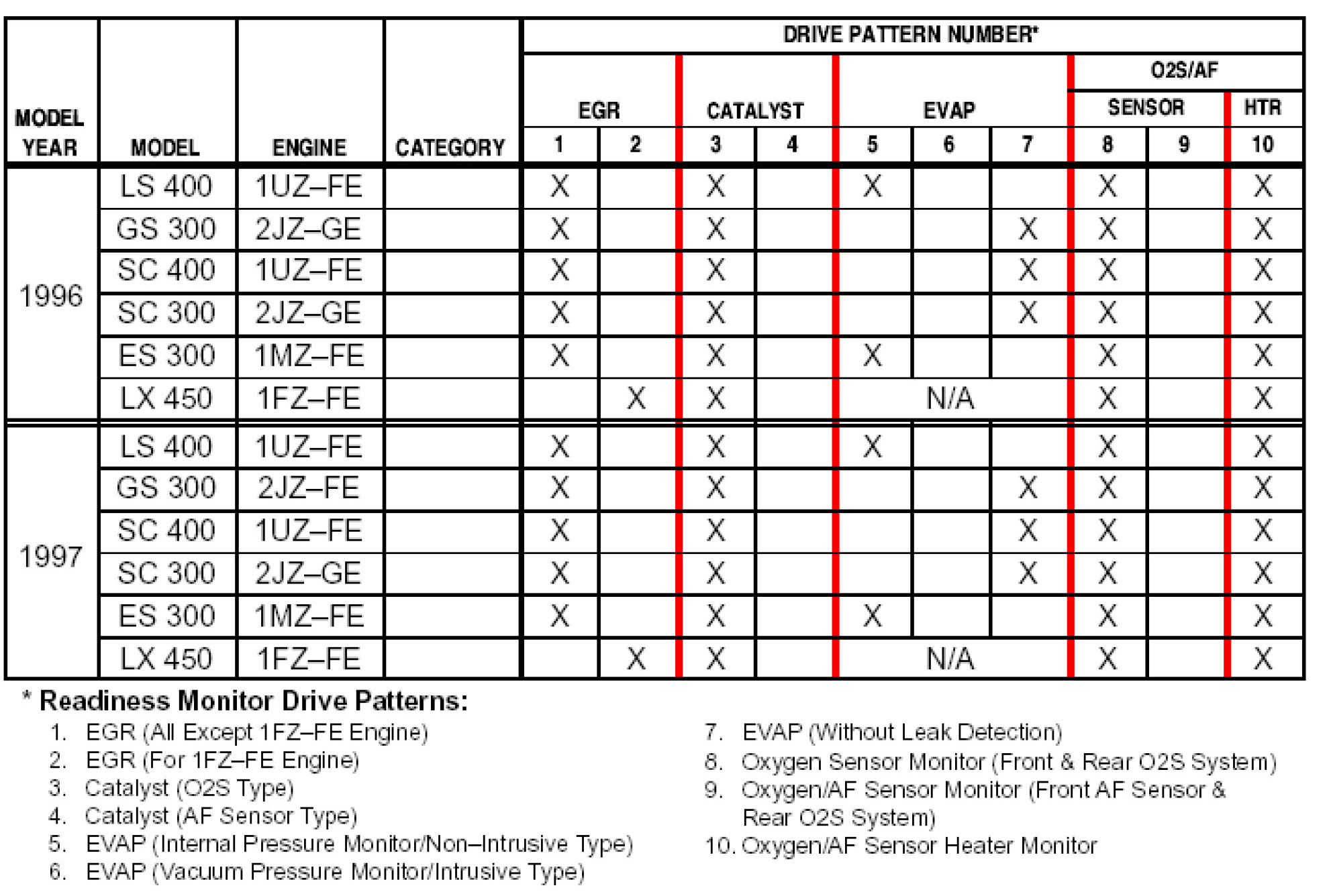 - These drive patterns represent the fastest method to satisfy all necessary conditions which allow the specific Readiness Monitor to complete.
