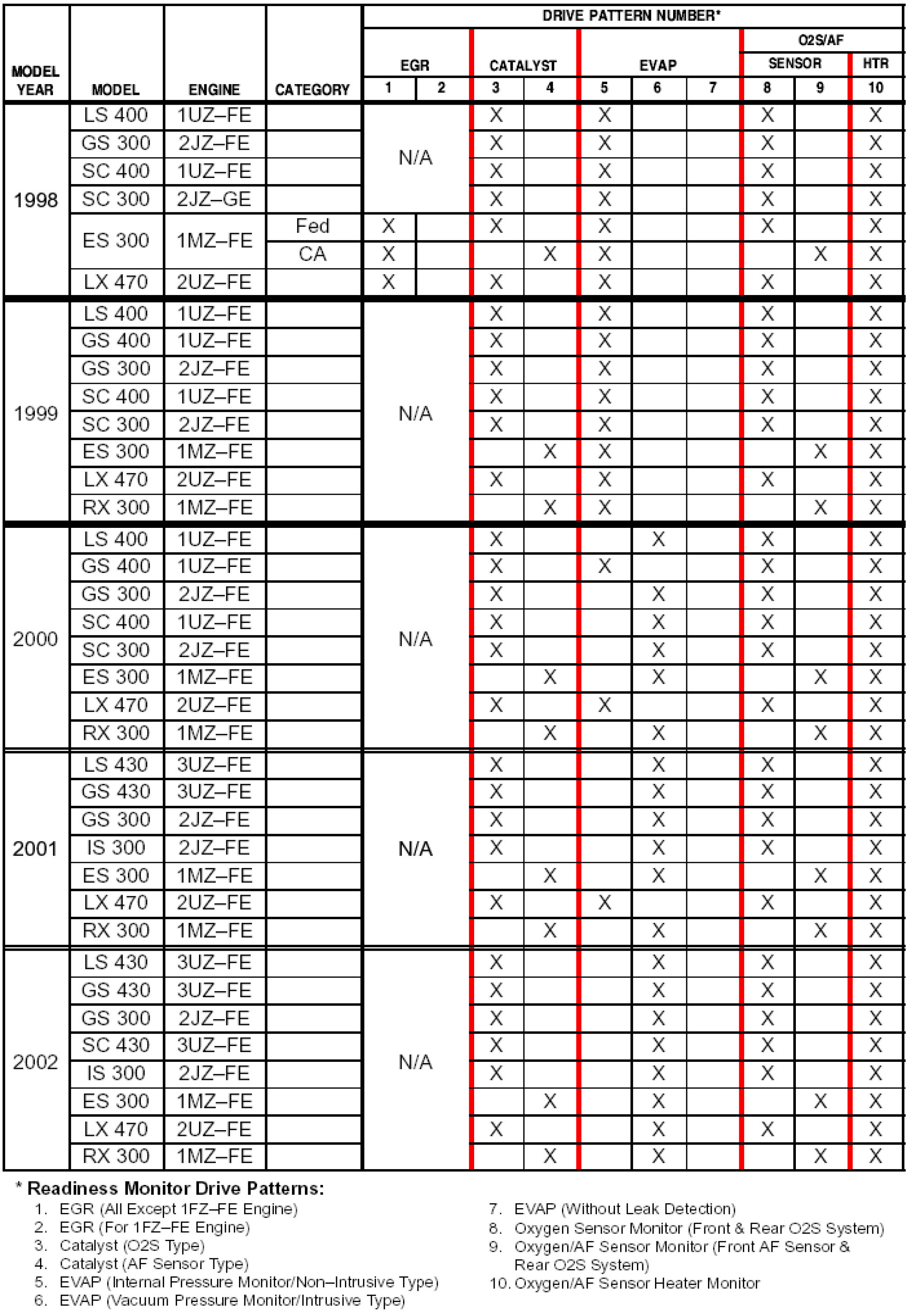 APPLICABLE VEHICLES: ALL 1996 - 2002 model year Lexus vehicles.