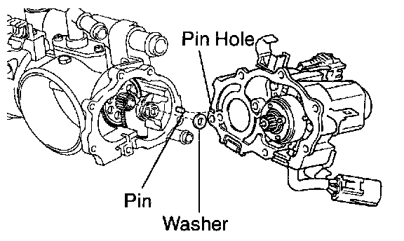 7. Align the pin hole of the throttle control motor cover with the positioning pin of the throttle body.