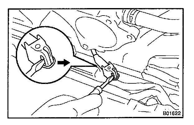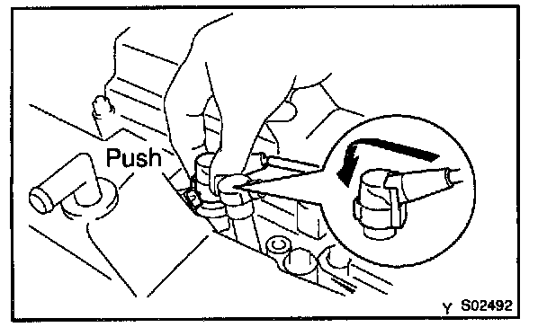 1. Using a screwdriver, lift up the lock claw and disconnect the holder from the ignition coils.
