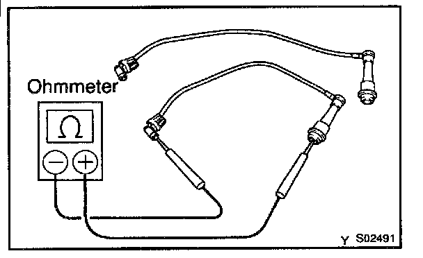 NOTE : "Cold" and "Hot" in these sentences express the temperature of the coils and sensors themselves. "Cold" is from -10 °C (14 °F) to 50 °C (122 °F) and "Hot" is from 50 °C (122 °F) to 100 °C (212 °F).INSPECT HIGH-TENSION CORDS