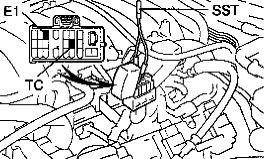 a) Using SST, connect terminals TC and E1 of the DLC1.