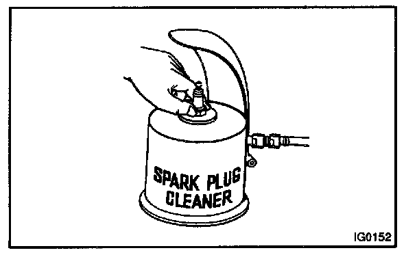 HINT: If there are traces of oil, remove it with gasoline before using the spark plug cleaner.