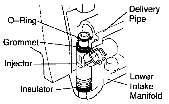 Before installing the injector, must apply spindle oil or gasoline on the place where a delivery pipe or an intake manifold touches an O-ring of the injector.