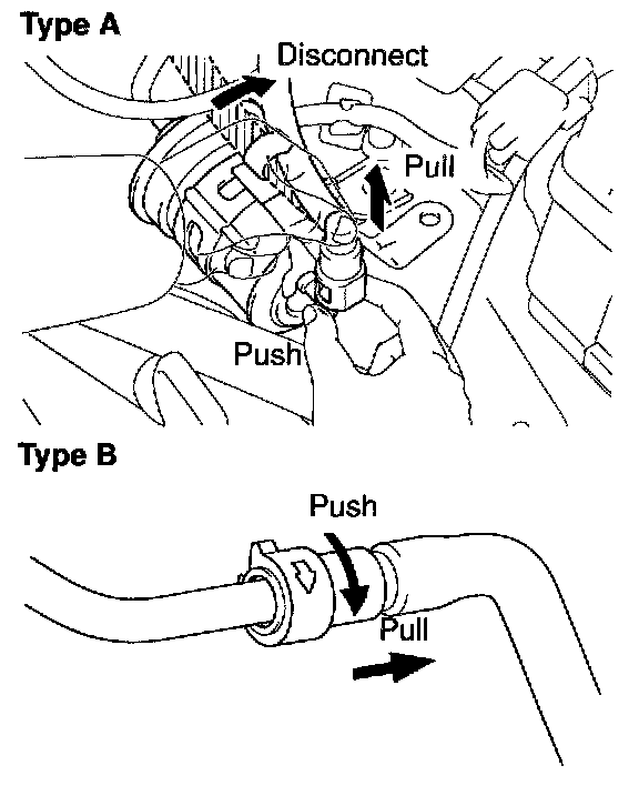 f. Observe these precautions when disconnecting the fuel tube connector (quick type):