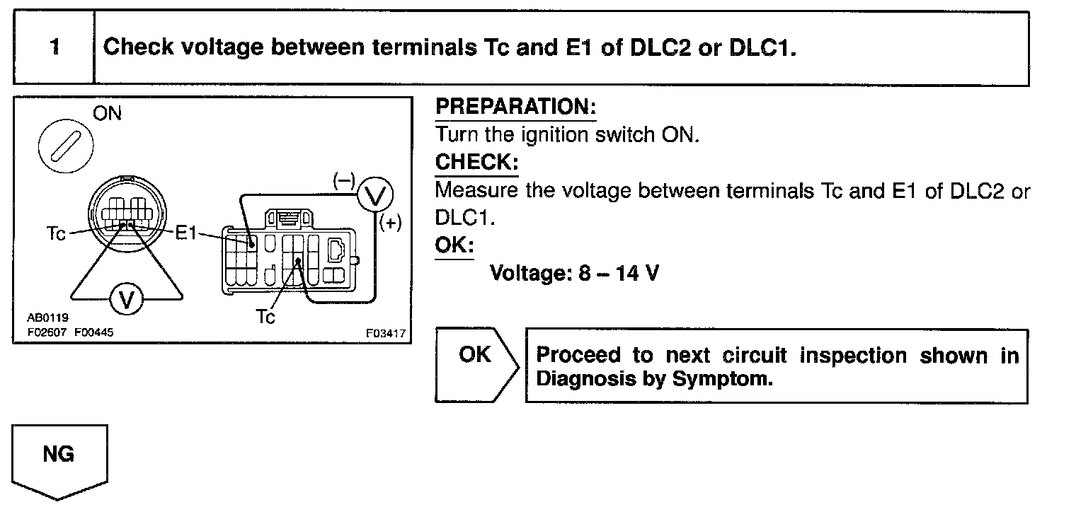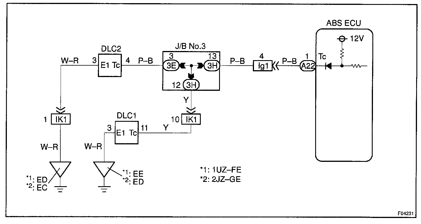 By connecting terminals Tc and El of DLC1 or DLC2, the ECU displays the DTC by blinking the TRAC OFF indicator light.