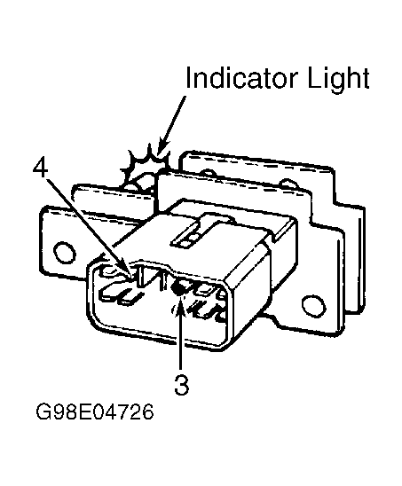 Disconnect 12-pin anti-theft indicator connector. Connect positive battery lead to anti-theft indicator connector terminal No. 4 (Red wire) and negative battery lead to terminal No. 3 (Green/White wire). See Fig 1. See WIRING DIAGRAMS . If anti-theft indicator illuminates, go to next step. If anti-theft indicator does not illuminate, replace anti-theft indicator.