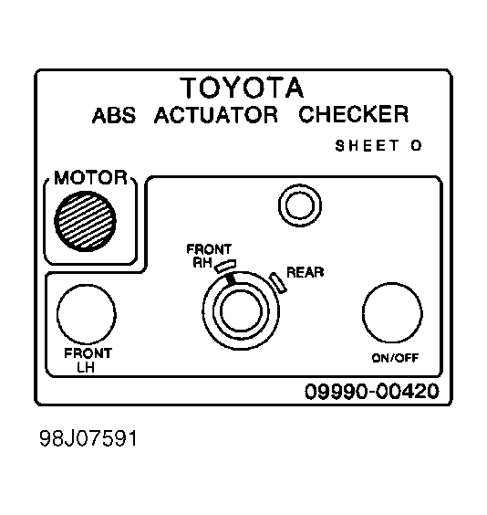 - Place SHEET "O" (SST 09990-00420) on ABS actuator checker. Start engine and run at idle. Turn selector switch of ABS actuator checker to FRONT RH position. See Fig 2.