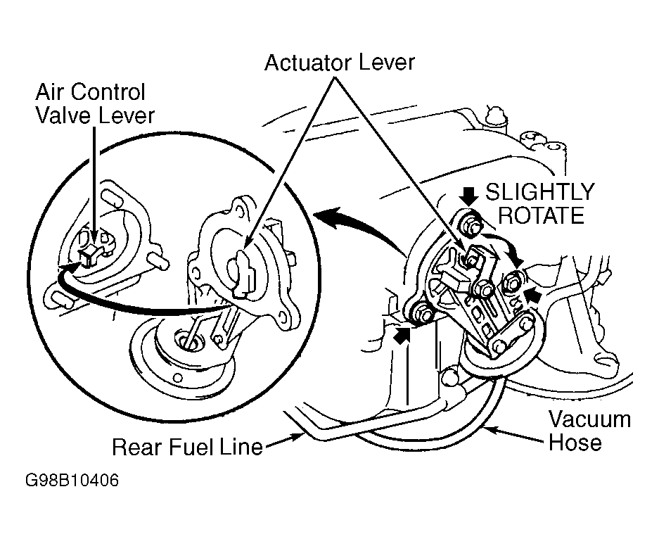 - To install, reverse removal procedure. Install NEW IAC valve actuator gasket. Slightly rotate actuator lever clockwise. See Figure. Connect actuator and air control valve levers. Install IAC valve.