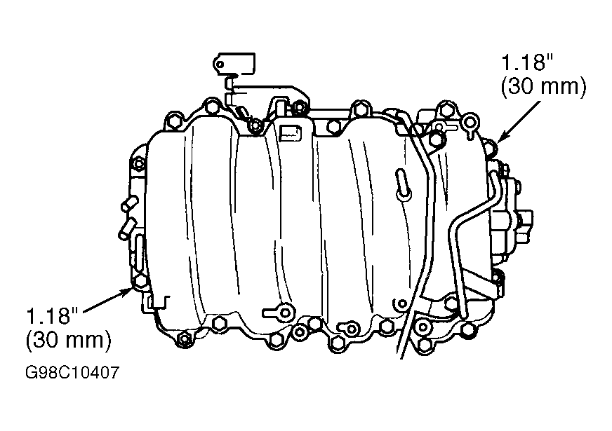 - Install NEW intake manifold gaskets with White mark facing upward. Marks are painted on outer tabs of gasket. Ensure longer intake manifold bolts are installed in proper location. See Fig 3. Ensure to route IAC valve actuator vacuum hose under rear fuel line when reconnecting. Tighten all nuts/bolts to specification. See TORQUE SPECIFICATIONS .