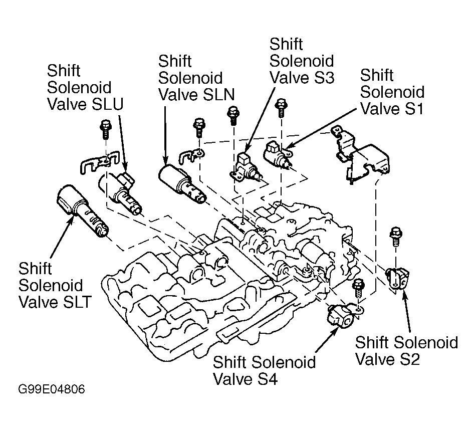 Automatic transmission is electronically controlled. Transmission shifting and torque converter lock-up are controlled by an Electronic Control Module (ECM). ECM receives information from various input devices and uses this information to control shift solenoids for transmission shifting and lock-up solenoid (also called SLU solenoid) for torque converter lock-up. SLN solenoid is used to control hydraulic pressure acting on accumulator control valve. Valve assists in smooth shifting. Solenoids are mounted on transmission valve body. See Fig 1.