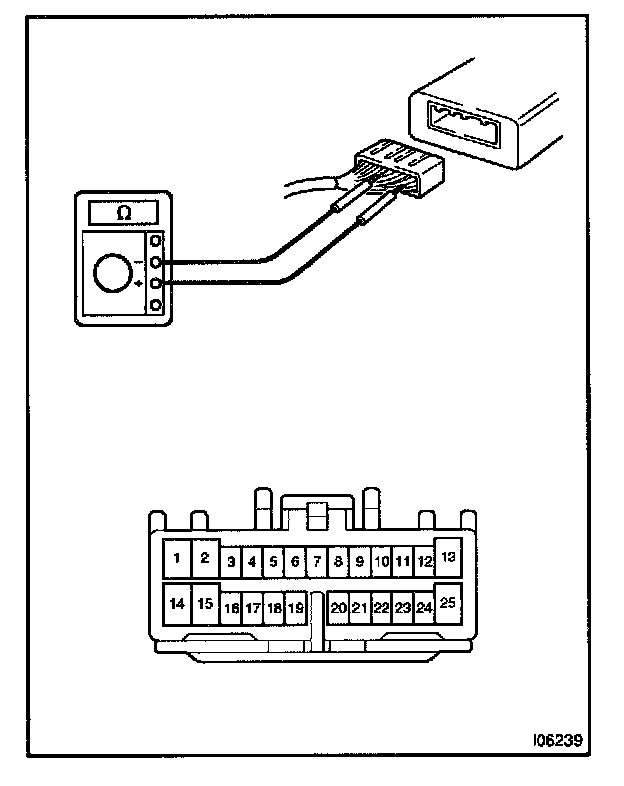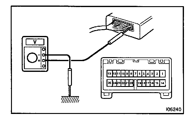 Connect the connectors and using a voltmeter with high impedance (10 kohm/V minimum), measure the voltage at each terminal and body ground.
