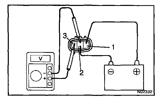 d. Check that there is voltage change from approx. 0 V to 11 V or more between terminals 2 and 3.