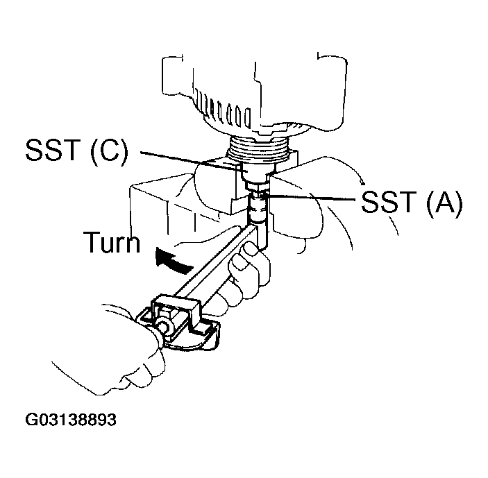 8. Turn SST (SST 09820-63010-B), and remove SST (SST 09820-63010-A and SST 09820-63010-B).