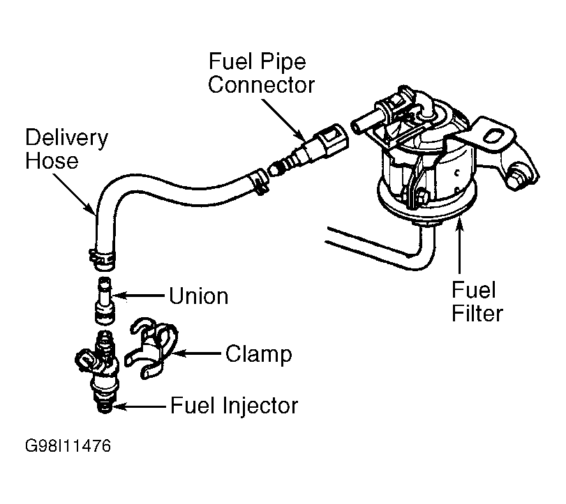 8. Reinstall fuel pipe clamp until "click" sound is heard. Pull upward on fuel pipe clamp to ensure clamp is securely locked on fuel filter. Install negative battery cable. Check for fuel leaks by using scan tool to energize fuel pump.