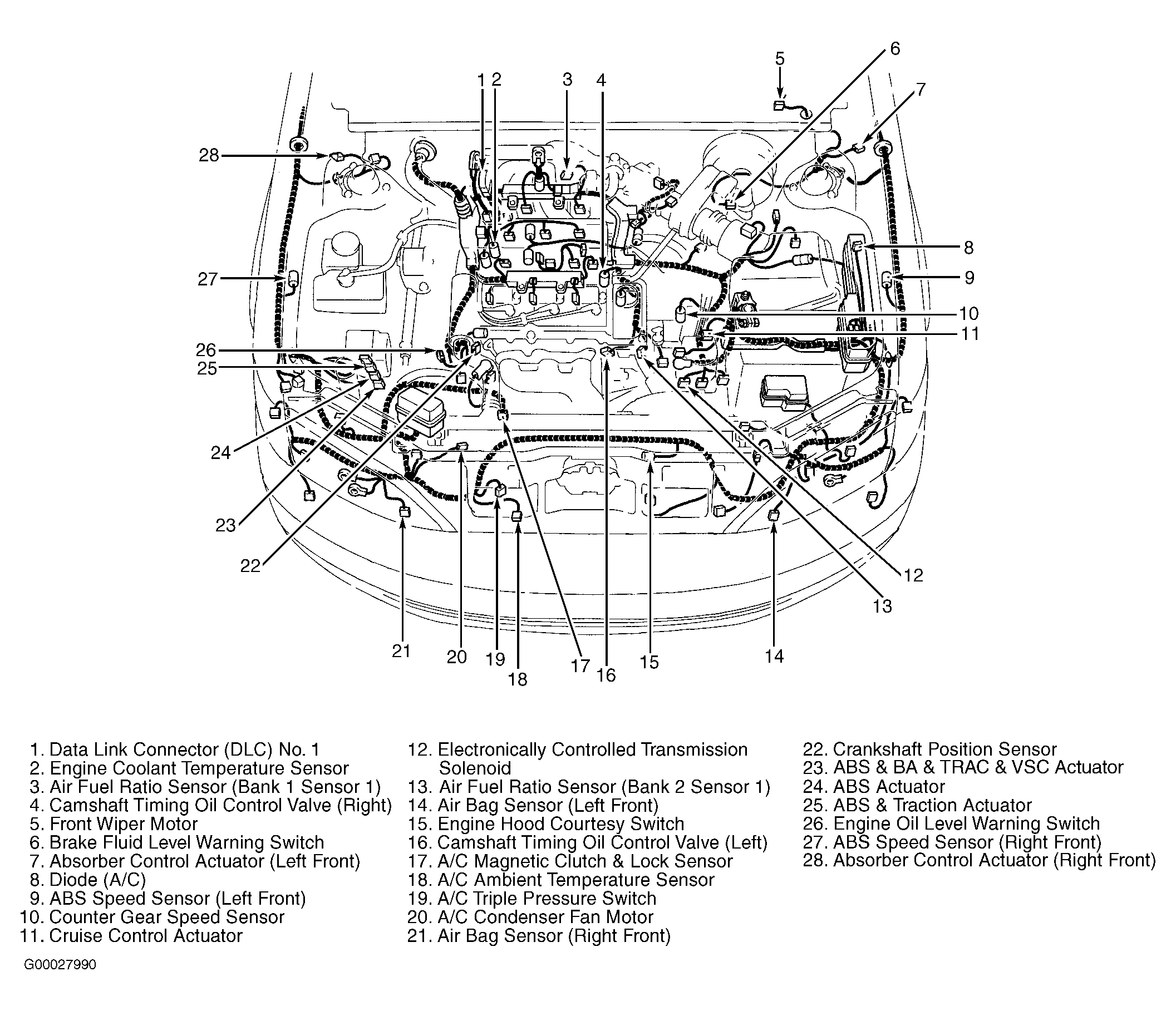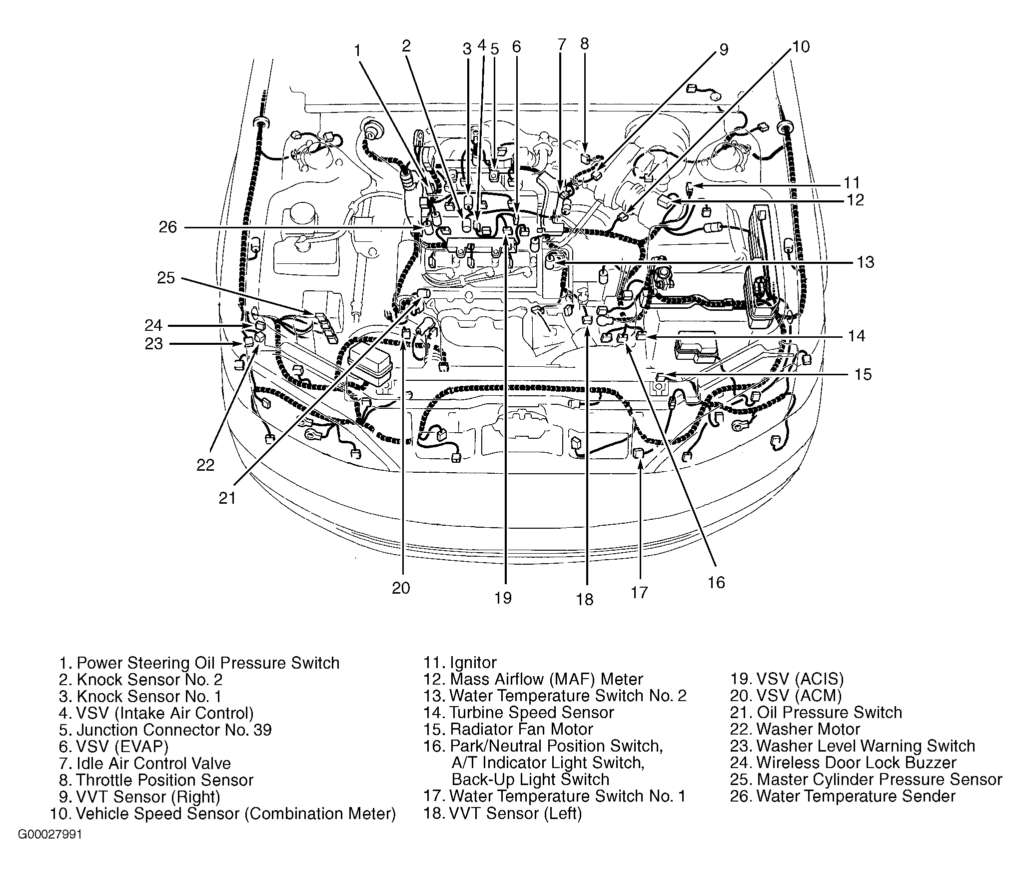 | Water Temperature Switch No. 1 | In left front of engine compartment. See Figure. |