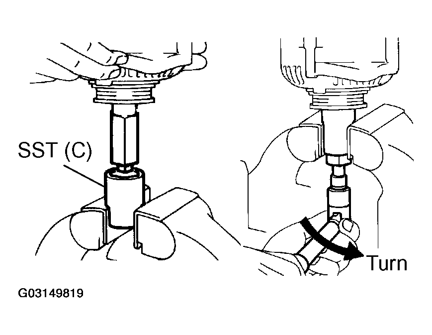 1. Hold SST (SST 09820-63010 A) with a torque wrench, and tighten SST (SST 09820-63010 B) clockwise to the specified torque.