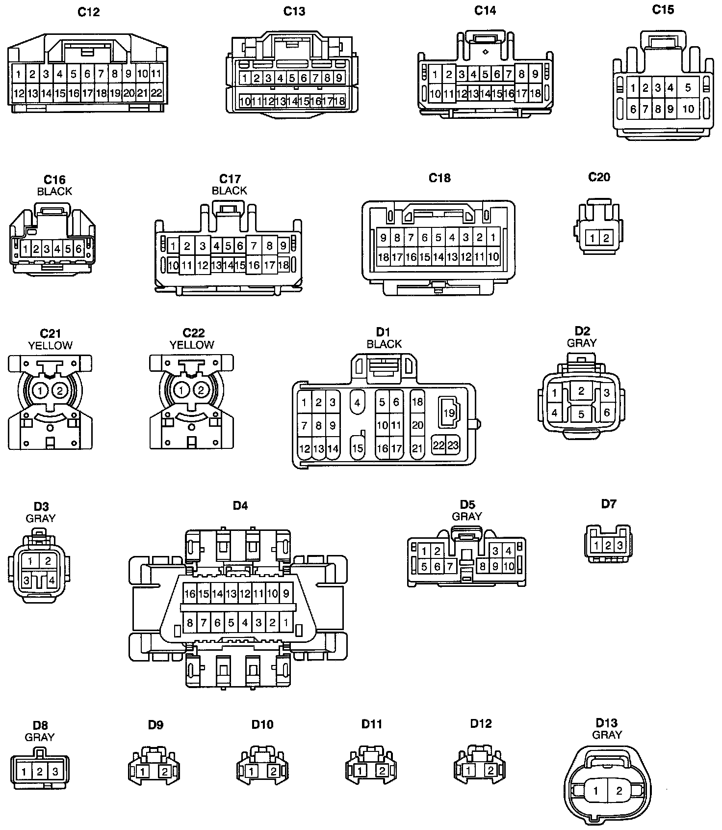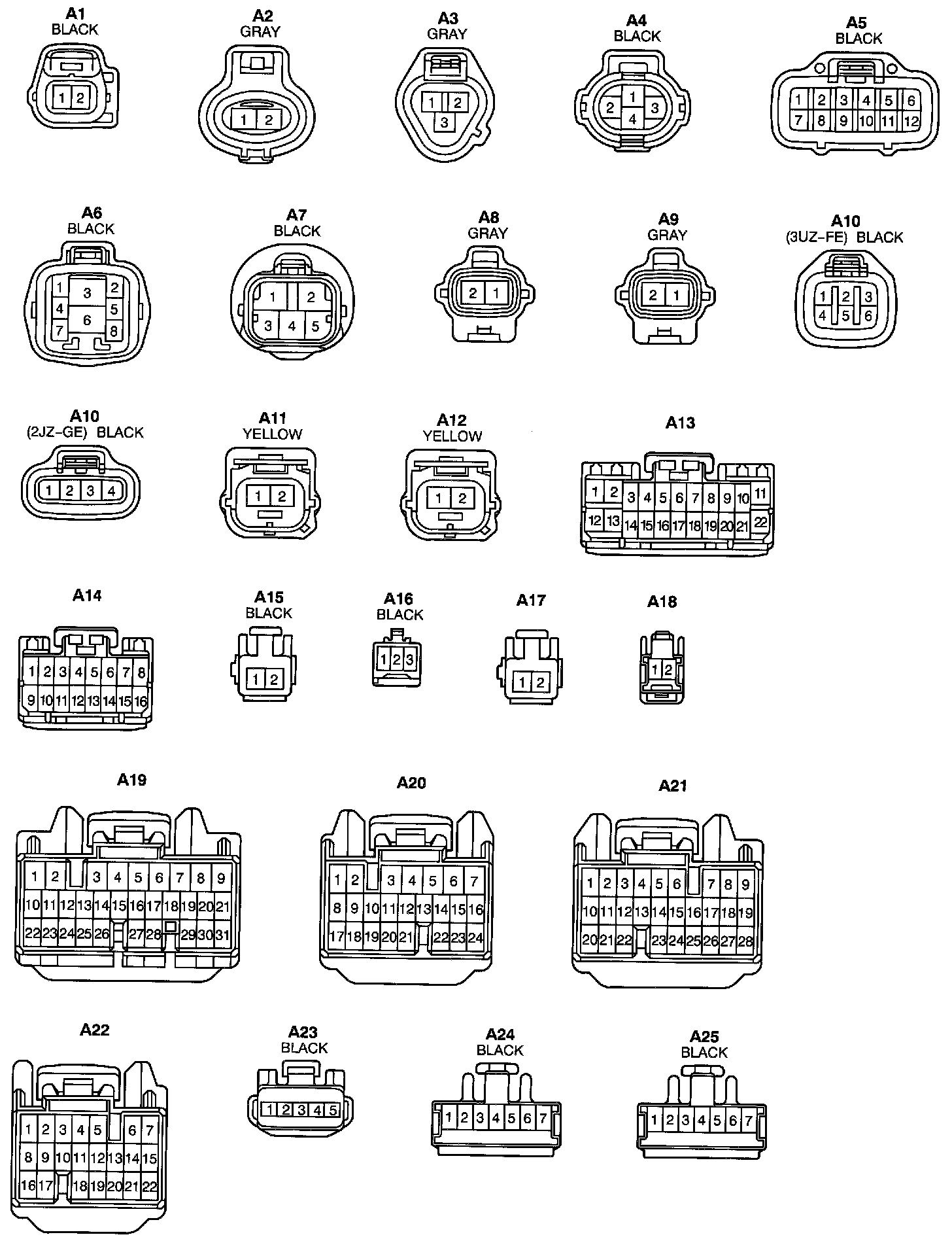 Connector Views (A26 - A35, B1 - 8, C1 - C11):