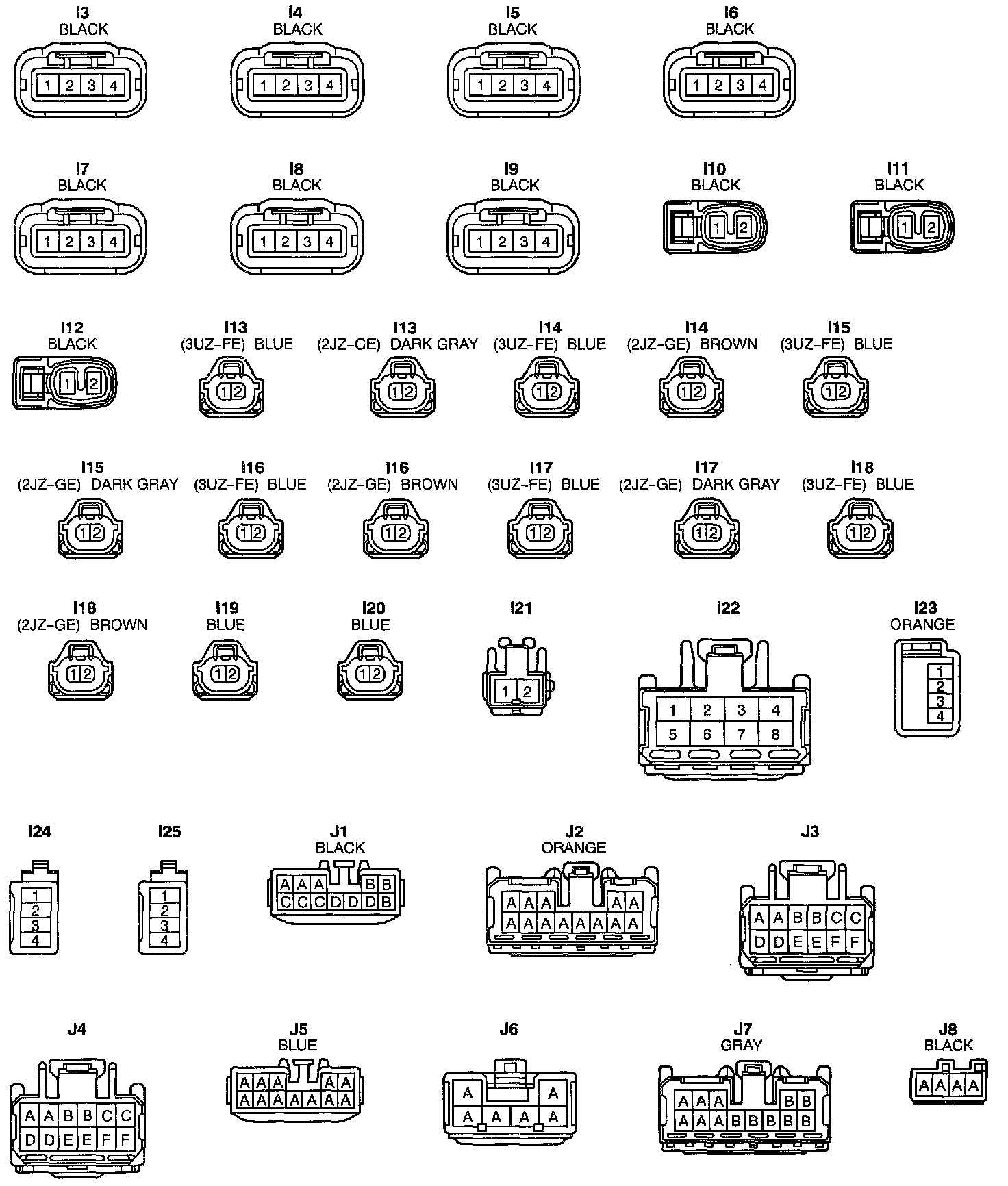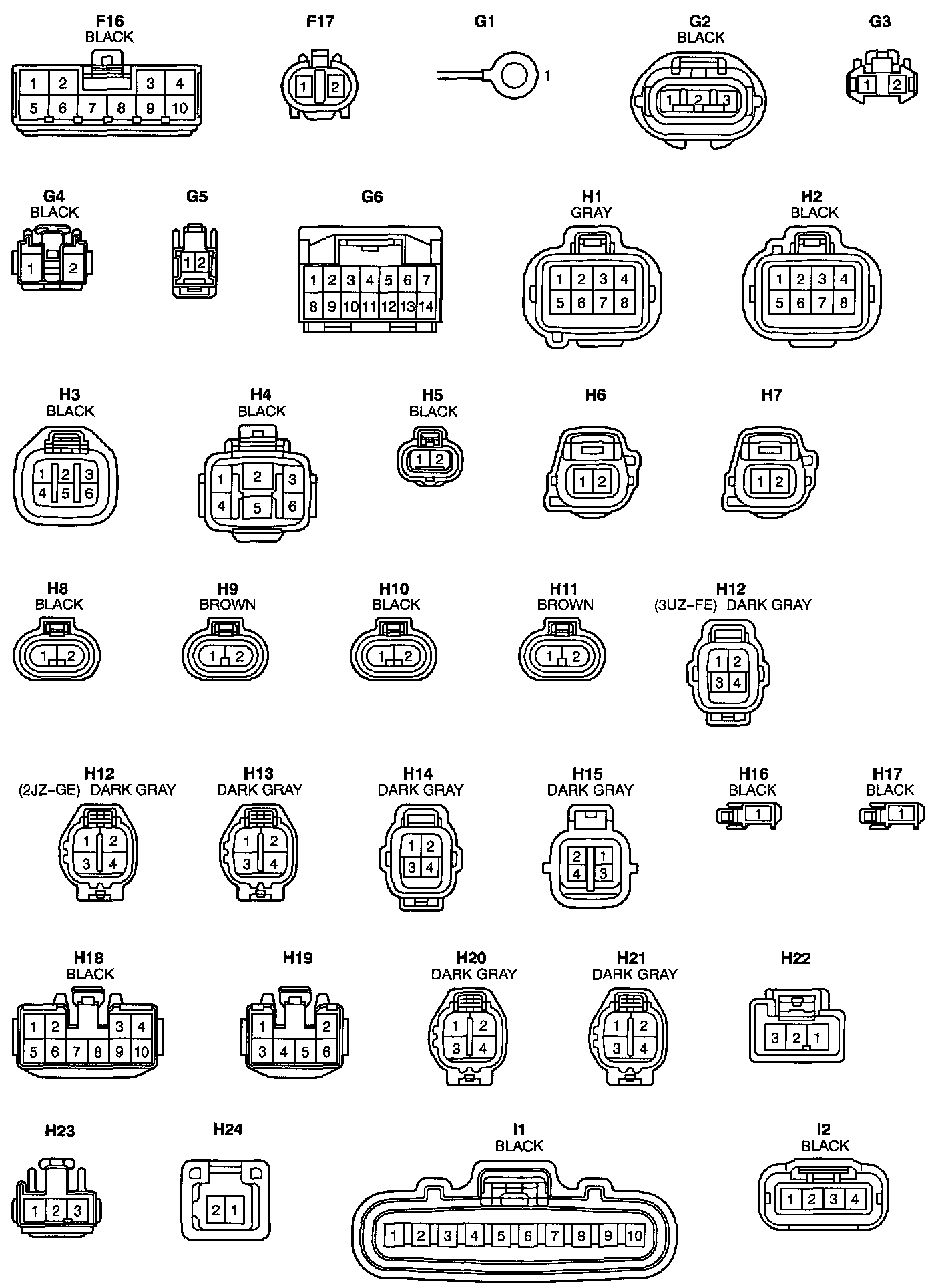 Connector Views (F16 - F17, G1 - G6, H1 - H24, I1 - I2):