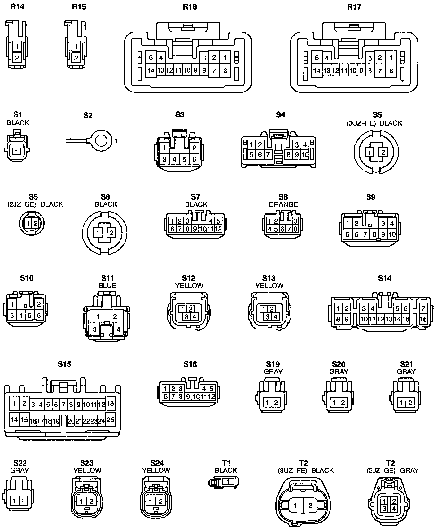 Connector Views (R14 - R17, S1 - S24, T1 - T2):