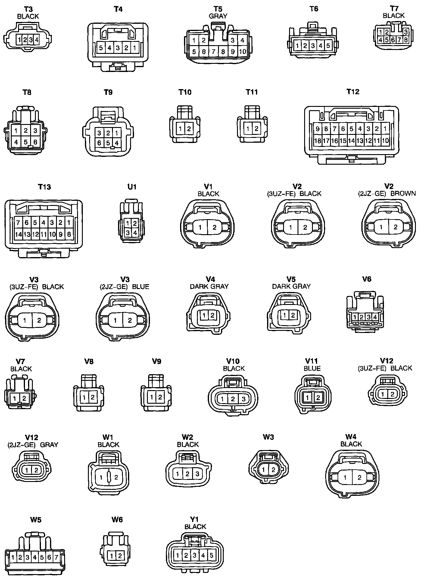 Connector Views (T3 - T13, U1, V1 - V12, W1 - W6):