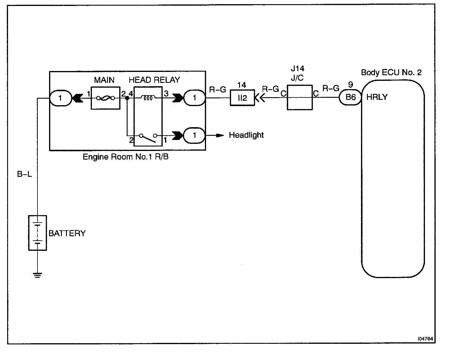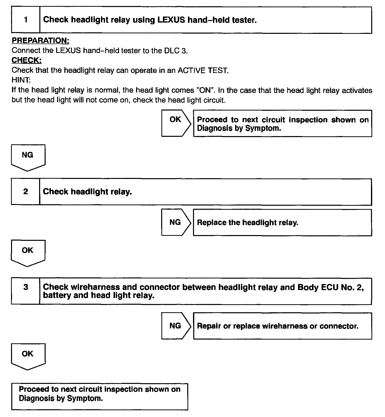 Home >> Lexus >> 2001 >> GS 430 V8-4.3L (3UZ-FE) >> Repair and Diagnosis >> Powertrain Management >> Computers and Control Systems >> Body Control Module >> Testing and Inspection >> Component Tests and General Diagnostics >> Headlight Relay Circuit