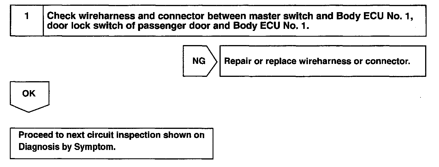 This circuit is the power source of the master switch for the driver's door and the door lock switch for the passenger's doors.