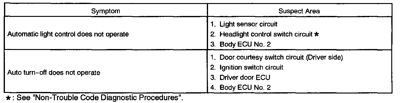 Problem Symptoms Table - Light Control: