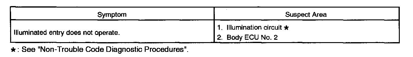Problem Symptoms Table - Illuminated Entry: