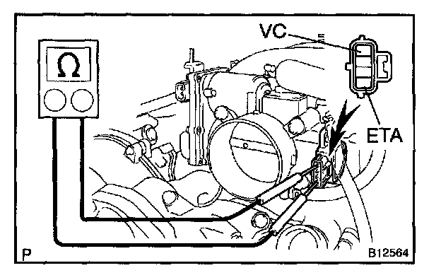 If you have no LEXUS hand-held tester, measure voltage between terminals VTA and ETA of the ECM connector.