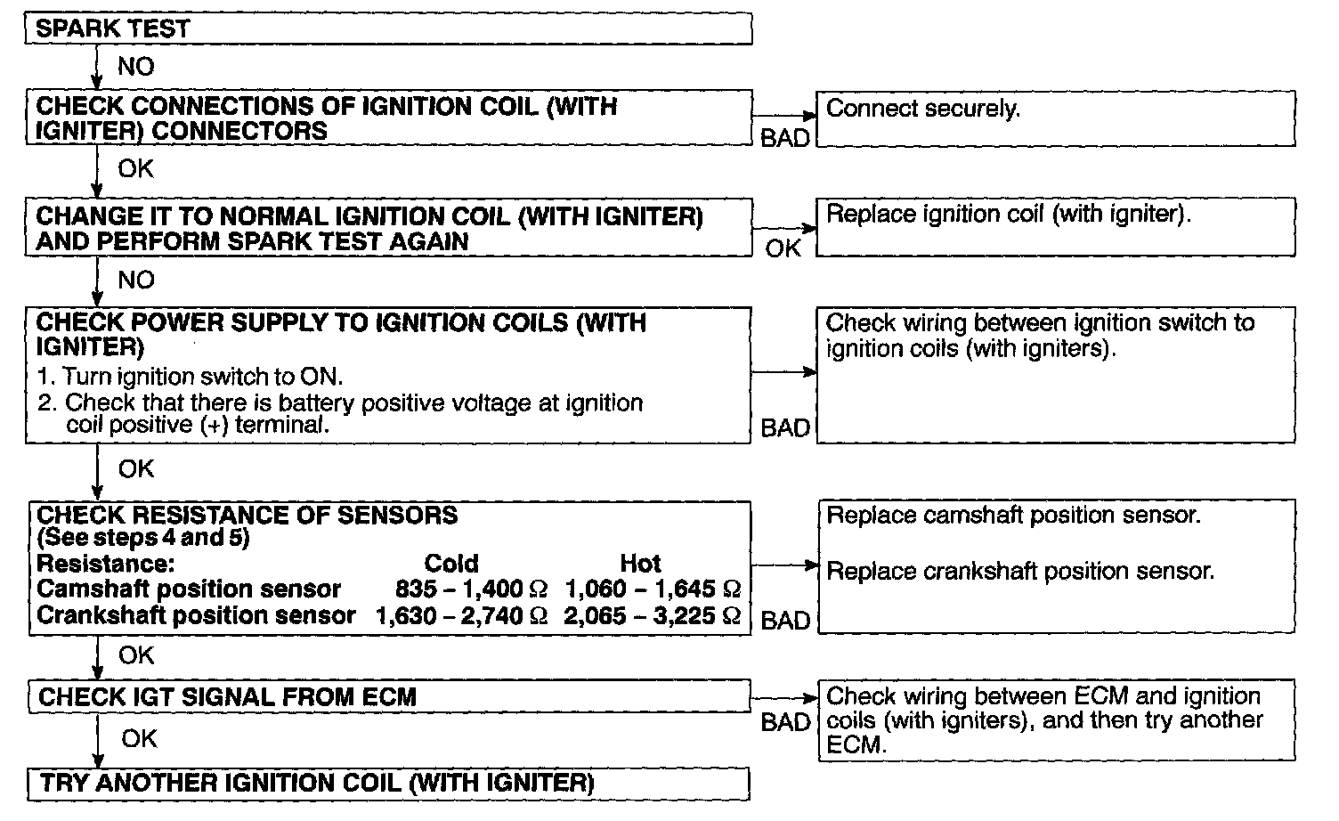 If the spark does not occur, do the test as per the given flow chart.