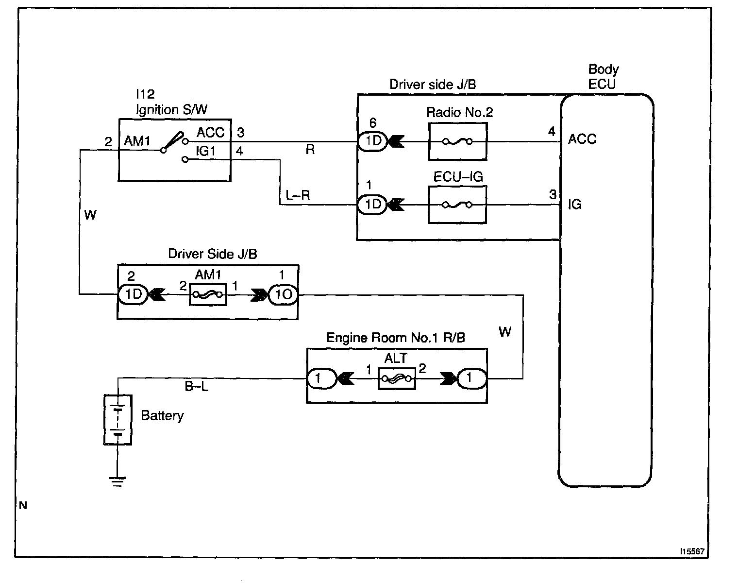 Home >> Lexus >> 2001 >> IS 300 L6-3.0L (2JZ-GE) >> Repair and Diagnosis >> Powertrain Management >> Computers and Control Systems >> Body Control Module >> Testing and Inspection >> Component Tests and General Diagnostics >> Ignition Switch Power Source Circuit